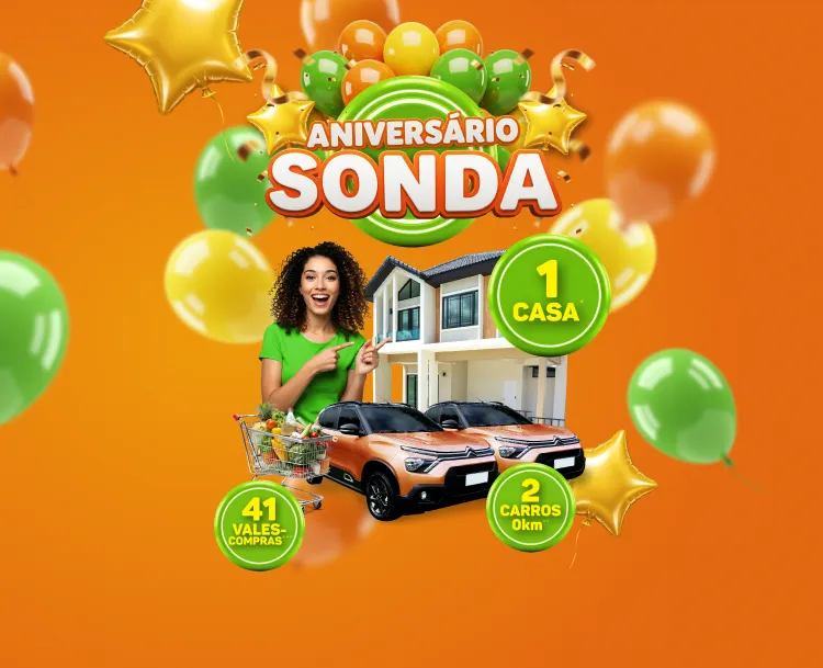 Faça suas compras na Loja Sonda mais próxima ou pelo Sonda Delivery. A cada R$ 100 em compras no mesmo comprovante fiscal, você garante chances para os sorteios!